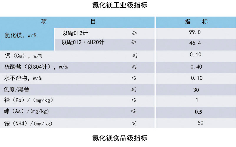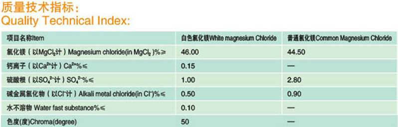 (1)按照含量分類(lèi):六水氯化鎂≥46% 無(wú)水氯化鎂≥99%